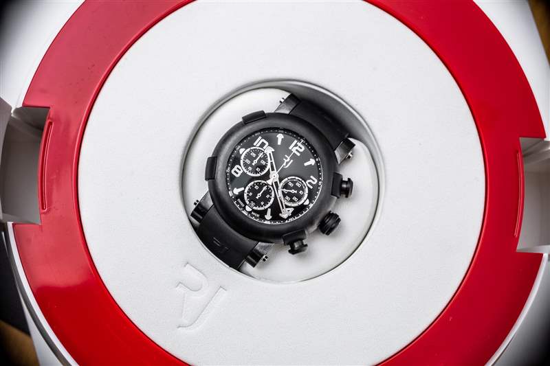 表帶本身采用黑色橡膠制成,并具有大大改進的折疊展開式表扣。許多以前的 RJ 手表的表帶過厚,展開器笨重,因此很少有粉絲。這種更薄的橡膠表帶款式和更緊湊的鈦金屬展開器是正確的選擇。這也是您看到宇舶表影響的地方,因為 Tedeschi 先生曾在宇舶表工作多年。