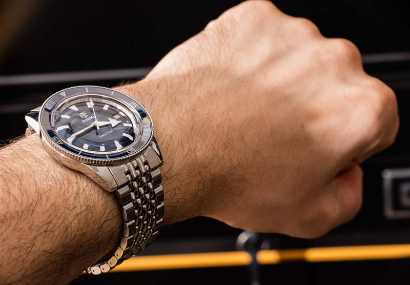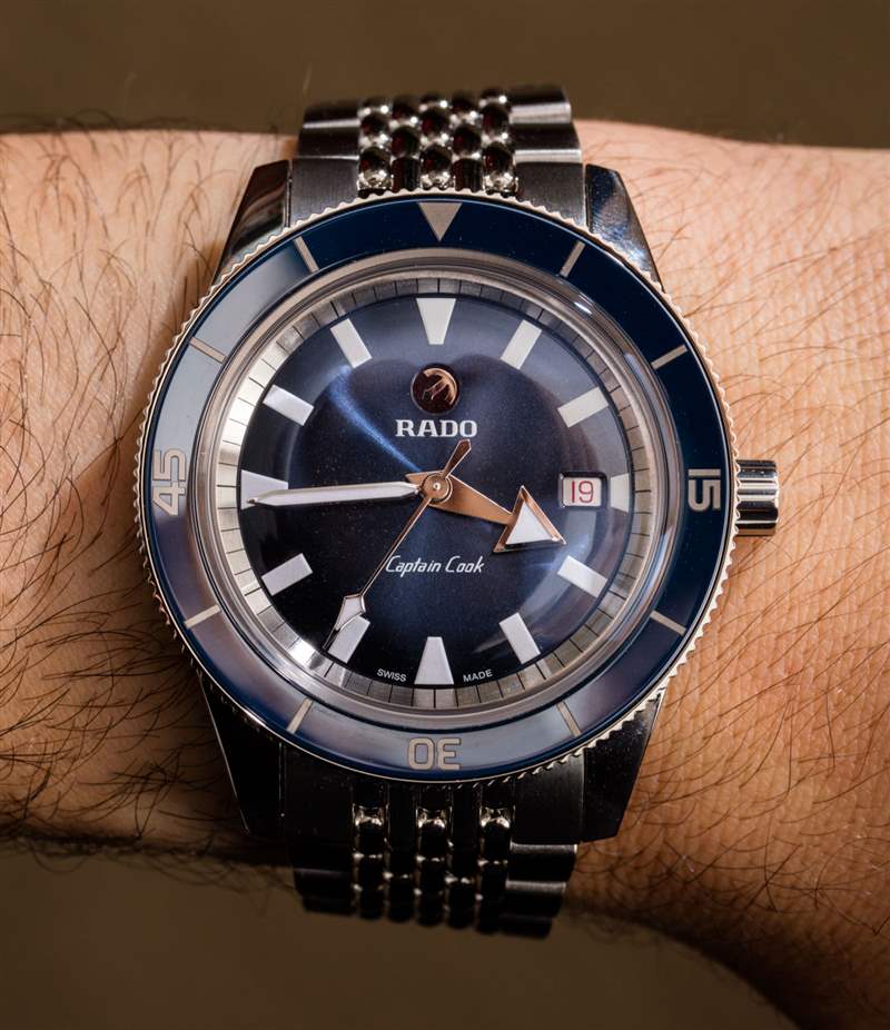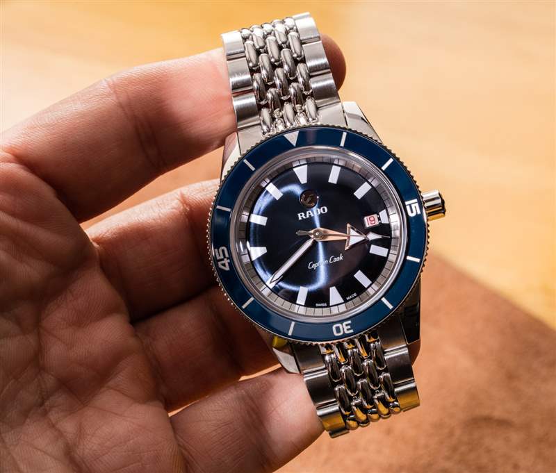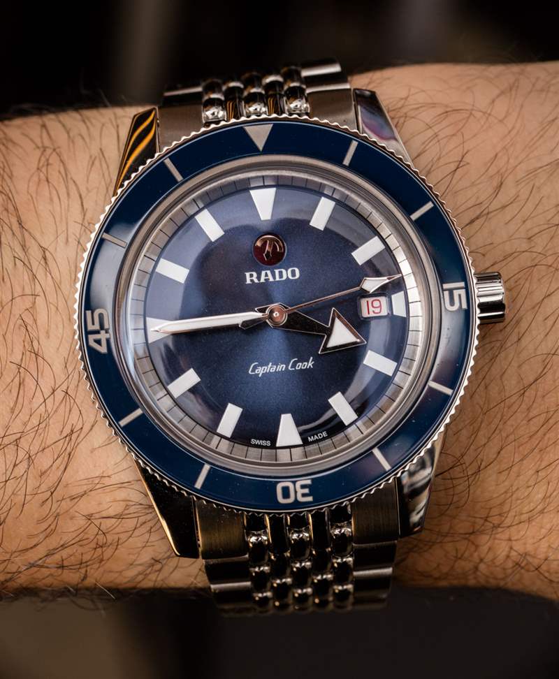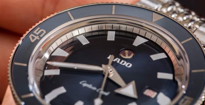 對于一些更現(xiàn)代的 Rado 手表,我不得不接受的一件事是,它們不再總是采用像陶瓷和其他異國情調(diào)的材料那樣的現(xiàn)代材料作為表殼的一部分。庫克船長自動腕表確實有一個藍色陶瓷表圈插件,但表殼本身是不銹鋼的。這并沒有錯,但消費者(至少在北美)習(xí)慣于 Rado 的一切都是關(guān)于超耐刮擦金屬外觀的陶瓷材料,在考慮這樣的時計時,他們將不得不重新審視 Rado 的價值觀。
