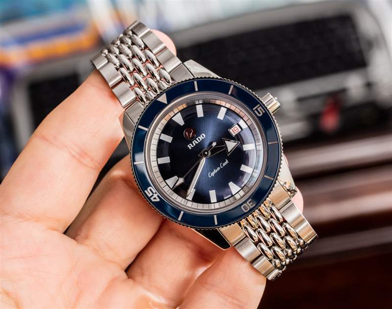 不計算各種顏色以及表帶或表鏈上是否有手表,瑞士手表品牌Rado目前在其網(wǎng)站上有五款帶有“庫克船長”名稱的手表,其中最近的一款是這款不起眼的“庫克船長自動上尉” 。”?在我看來,它是目前市面上最好的 Rado Captain Cook 手表。這個特別的版本是鋼,藍色表盤和匹配的陶瓷表圈 Rado Captain Cook 自動參考 R32505203 |?01.763.0505.3.020。