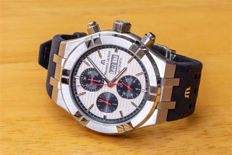 這款參考 AI6038-SS001-133-1 限量 500 枚,是相當熱門的Maurice Lacroix Aikon 自動計時碼表 44 毫米手表系列中的 2019 年新型號之一(最初在 aBlogtoWatch 上進行了評論)。價格約為 3,000 美元,或多或少是 Aikon 標準系列中的佼佼者,直到您接觸到諸如Maurice Lacroix之類的異國情調的手表Aikon 制造更具異國情調的 Aikon Mercury 的骨架。這款限量版 Aikon(發音為“icon”)44 毫米自動計時碼表采用紅色、白色(白色)和藍色來區分,搭配穿孔皮革表帶和鋼質展開式表扣。然而,我確實決定將它戴在舒適的鋼表鏈上,該表鏈可用于其他版本的 Aikon 自動計時碼表,并且易于更換表殼。