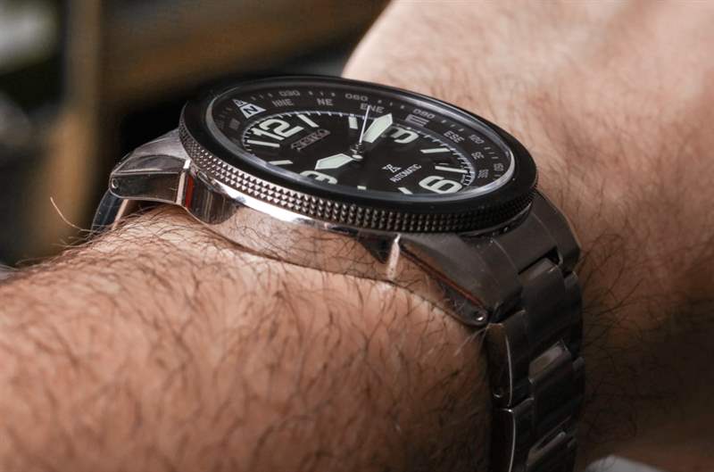 鋼制表殼的重量和表殼的厚實比例(以及相當大的表冠護罩)使整個精工 SRPA71 表殼看起來非常耐用,我真的很喜歡。大部分表殼經過拋光處理,而一些頂部表面經過拉絲處理。隨附的手鏈采用三連桿設計,在其他所有拉絲表面之間具有一些拋光部分,具有相當的吸引力。手鐲不會變細,這可能會稍微提升外觀——但這樣的東西又會增加生產成本,這樣的手表確實是一種成功的效率練習。