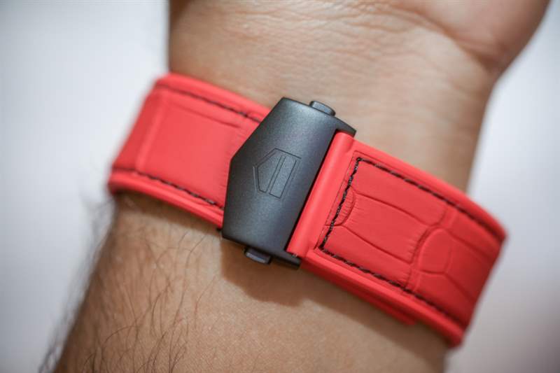 戴在手腕上的 TAG Heuer Carrera Heuer 01 Manchester United Red Devil 45 毫米(也有 43 毫米寬的版本)非常舒適——尤其是在表帶上。從宇舶表的另一個角度來看,表帶是橡膠的,外面有鱷魚皮。這是一種“兩全其美”的方法,您可以在其中擁有橡膠的舒適性和耐磨性以及外部鱷魚皮的視覺吸引力。豪雅表實際上提供了兩個版本的 Carrera Heuer 01 曼聯紅魔特別版腕表——兩者的區別在于表帶的顏色,一個是紅色,另一個是黑色。我個人偏愛紅色表帶版本——因為它是這款 TAG Heuer Carrera Heuer 01 45 毫米手表的特別酷的外觀。