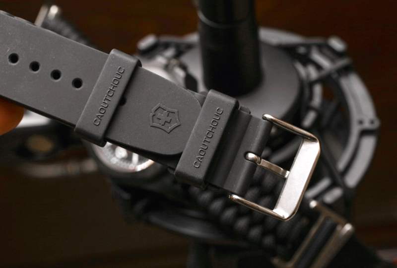 表殼與其他 43 毫米寬的 Victorinox 瑞士軍 INOX 手表的形狀相同,并且仍然防水 200 米。表殼的后部是鋼制的,我認為也有一個鋼制內殼。此外,不要忘記,由于這是一款 INOX 手表,Victorinox Swiss Army 傳統上提供橡膠表殼護罩,您可以將其放在手表上以增加耐用性。