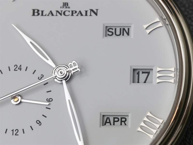讓我在這里補充一下,您看到的模型實際上是在 18k 白金表殼中,但似乎寶珀將其作為鋼模型和相同的 18k 白金表殼生產另一種表盤選項。這是一種可能性,但很難確認,因為他們的網站不清楚是否有帶有這種干凈白色表盤的 18k 白金型號可用。