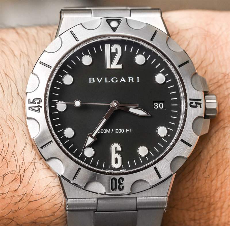 比較:?41 毫米寬的 Diagono Scuba 與勞力士 Submariner 的寬度大致相同,并且它們的厚度輪廓也相似。在手腕上,它們有非常不同的感覺,即使它們試圖服務于相同的目的。兩者都是 300 米防水潛水員,并包含內(nèi)部運動。Bulgari?Diagono Scuba 沒有陶瓷表圈(它采用全鋼設計),但它是一款令人欽佩且價格較低的勞力士 Submariner 替代品,具有更現(xiàn)代的設計師風格。