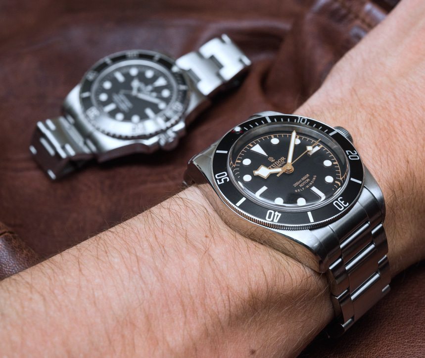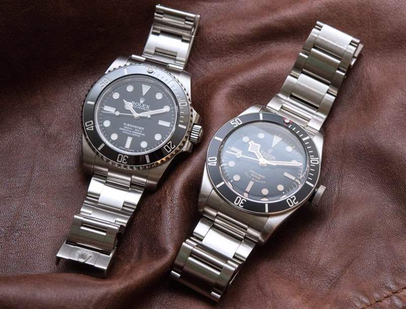 比較: Tudor Black Bay 比 40mm 勞力士 Submariner 略大,帶有 41mm 寬的鋼制表殼,也更厚一些。也許最大的“缺點”是它的鋁制表圈插入材料與勞力士 Submariner 更耐用的陶瓷相比——盡管您確實在 Heritage Black Bay 中獲得了更多有趣的顏色選擇,例如酒紅色。實心表盤設計在歷史上受到勞力士 Submariner 的啟發(fā),因此差異很小,但很明顯。