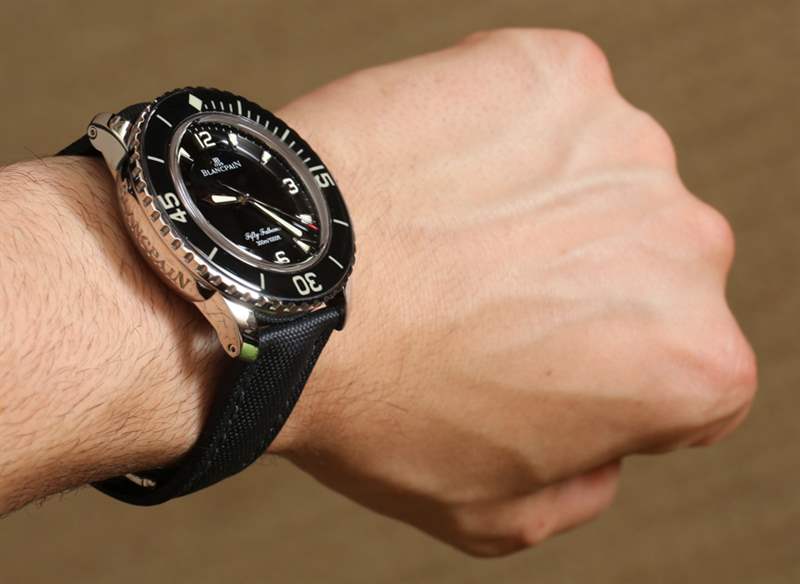 優(yōu)勢:?45 毫米寬和內(nèi)部機芯,寶珀五十噚 Automatique 5015(aBlogtoWatch 評論在這里)系列有一個可用的鋼模型,帶有匹配的表鏈和黑色表盤,在主題上與勞力士潛航者相同。它很昂貴,但它也制作精良且美觀。