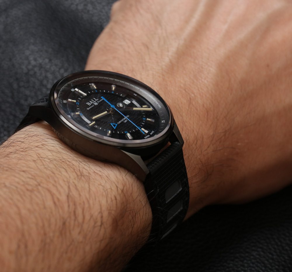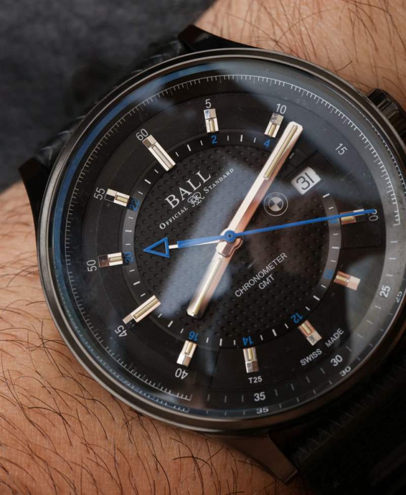 Ball 向我發(fā)送了這款 Ball For BMW GMT 限量版手表的早期原型,帶有黑色表盤、表帶和 DLC 黑色表殼。我想強(qiáng)調(diào)的是,這確實(shí)是一款原型表,這意味著它在外觀上與最終版本的外觀相去甚遠(yuǎn)。我這么說是為了解釋為什么這件作品的藍(lán)寶石水晶上沒有 AR 涂層,以及為什么您可能會(huì)注意到早期生產(chǎn)的表盤很臟。對(duì)我來說,我可以玩所有這些還沒有準(zhǔn)備好迎接黃金時(shí)段的鐘表!我是在諷刺,我對(duì)消費(fèi)者最終會(huì)實(shí)際購買的最終手表感到最興奮——即使在發(fā)布前看到東西是一項(xiàng)很酷的工作。