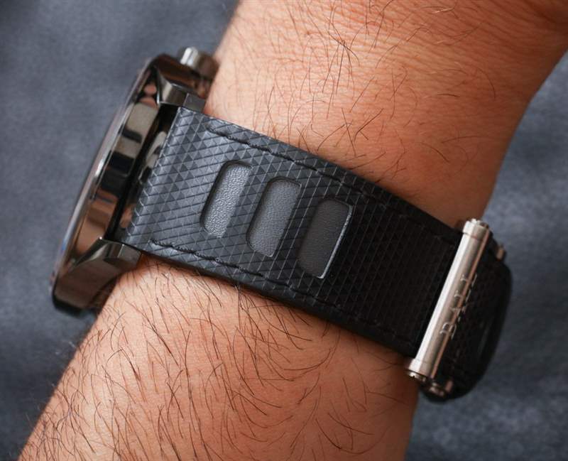 Ball For BMW GMT 寬 42 毫米,厚 12.64 毫米,是一款舒適且多功能的手腕時(shí)計(jì)。相對(duì)較薄的表圈可提供最大的表盤空間,既清晰又寬敞。Ball 設(shè)計(jì)了這款和其他帶有復(fù)雜表盤的 Ball For BMW 手表,盡管各種紋理和裝飾元素并沒有真正妨礙易讀性。這在一定程度上要?dú)w功于寬大的指針和突出的時(shí)標(biāo)。請(qǐng)注意,這些當(dāng)然是 Ball 手表,這意味著它們在時(shí)標(biāo)和指針上都使用自發(fā)光氚氣管。