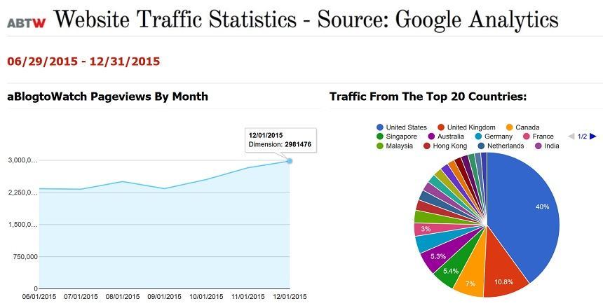 因此,總而言之,aBlogtoWatch 現在有一個小工具,可以讓任何人了解我們每月的基本流量以及大多數訪問該網站的人來自哪里。我們這樣做是為了幫助營銷公司,否則他們可能會掌握關于我們的完全錯誤的數據,從而誤導他們的客戶。我們也將此作為一種教育手段,用于那些自己認為需要某種類型的驗證來了解我們的流量的手表品牌。換句話說,這不是我們試圖隱藏的東西,我們會覺得它在那里更舒服,任何人都可以知道和驗證。
