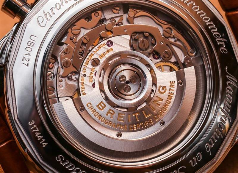百年靈 01 型機芯是一款非常堅固的機芯,好消息是您可以通過藍寶石水晶底蓋窗口看到它。正如你們許多人所知,對于百年靈來說,配備展覽底蓋的手表并不常見。通常,百年靈手表的底蓋雖然是實心金屬,但制作精良。01 以 4 赫茲(28,800 次/小時)的頻率運行,具有最長 70 小時的動力儲存,并提供帶日期的時間和 12 小時計時碼表。這絕對是一款工業化機芯,但它仍然具有豐富的內涵,就像百年靈在大多數鏡面表殼上所做的拋光一樣。