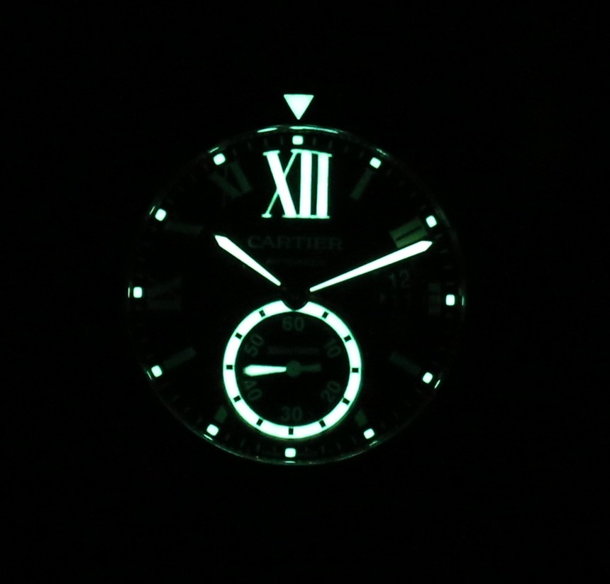在表盤(pán)上,您會(huì)看到與標(biāo)準(zhǔn)卡地亞機(jī)芯相比有一些變化。乍一看,它們看起來(lái)一樣,但并排看時(shí),您會(huì)看到重新設(shè)計(jì)的分鐘軌道、輔助秒盤(pán)和增加的夜光量。這并不是說(shuō)一個(gè)比另一個(gè)更有吸引力,但重要的是要意識(shí)到差異。每個(gè)都非常清晰,并提供半個(gè)羅馬數(shù)字和半個(gè)指揮棒時(shí)標(biāo)風(fēng)格的表盤(pán)。