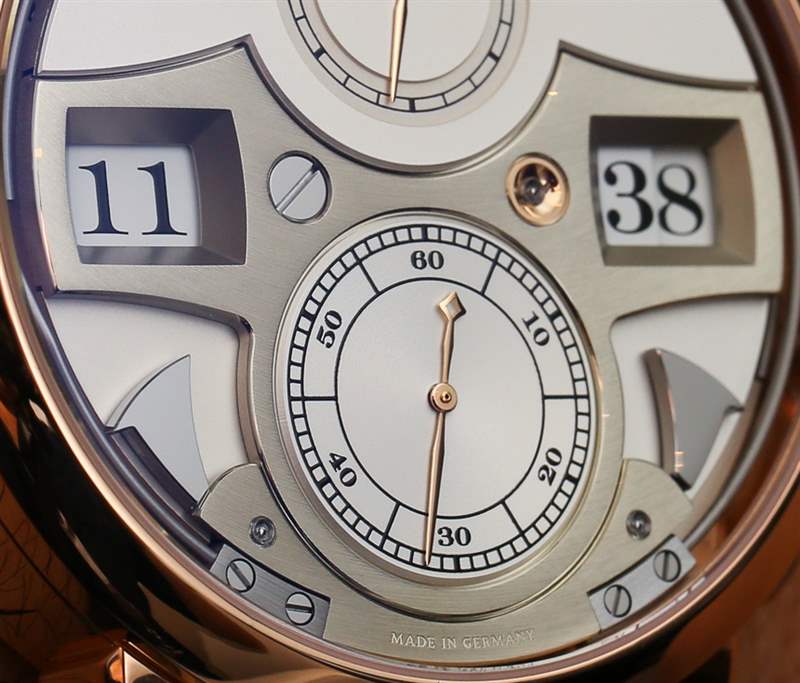 最初的 Zeitwerk 展示了一個雙數字顯示屏,提供了一個窗口,可以查看左側的小時數和右側的分鐘數。圓盤具有跳躍數字,這意味著當小時或分鐘發生變化時,下一個數字會立即跳到位,而不是逐漸移動的圓盤。顯示屏下方是傳統的模擬小秒盤,上方是動力儲存指示器。后一種功能是我認為在手動上弦手表中極為重要的功能。廣告留言廣告信息結束