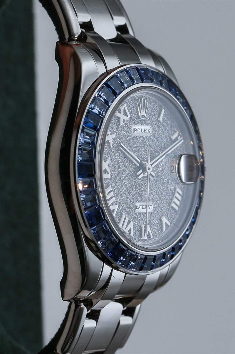 所以這些圖片是兩款新款 Datejust Pearlmaster 34 手表的圖片,它們將包含 2236 機(jī)芯。Datejust 的 Pearlmaster 版本具有獨(dú)特的手鏈和其他一些獨(dú)特的功能。當(dāng)然,這些特征通常包括寶石裝飾和貴金屬表殼和表鏈結(jié)構(gòu)。不出所料,2014 年的日志型 Pearlmaster 34 將采用 18k 黃金、白金或玫瑰金。白金款鑲嵌藍(lán)寶石,黃金款鑲嵌鉆石,玫瑰金 (Everose) 款鑲嵌紅寶石。所有型號(hào)均配備全鑲鉆表盤(pán)。廣告留言廣告信息結(jié)束