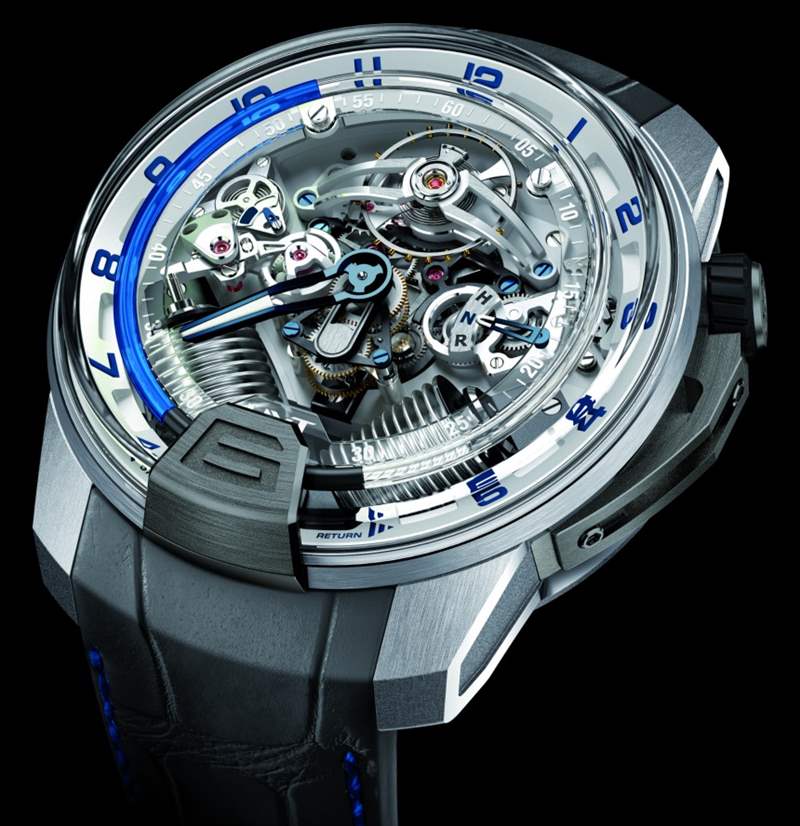 H2 機芯外觀精美,其復雜的三維結(jié)構(gòu)和表盤上的可見特征,包括平衡輪和大部分齒輪系。表盤還具有動力儲存指示器和表冠功能指示器(手動上弦、中性或時間設置)。它也恰好有一個溫度指示器。與 H1 相比,H2 是一款更獨特、更高端的產(chǎn)品,但它也是一件更令人印象深刻的鐘表藝術品。