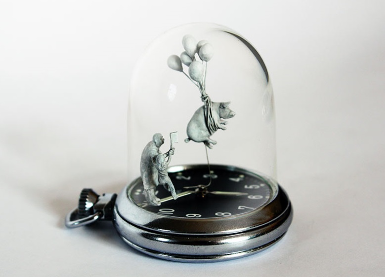 Wilcox 將這些作品稱為“鐘表雕塑”,并以他購(gòu)置的古董腕表和懷表為開(kāi)端。第一步是移除水晶,并用一個(gè)高大的圓頂代替它們,為他創(chuàng)作的小雕塑和小雕像騰出空間。Wilcox 聲稱自己的靈感來(lái)自真實(shí)和想象的情境,并將手表指針的運(yùn)動(dòng)作為藝術(shù)的一部分。這些小雕像實(shí)際上是放在手表的指針上。廣告留言廣告信息結(jié)束