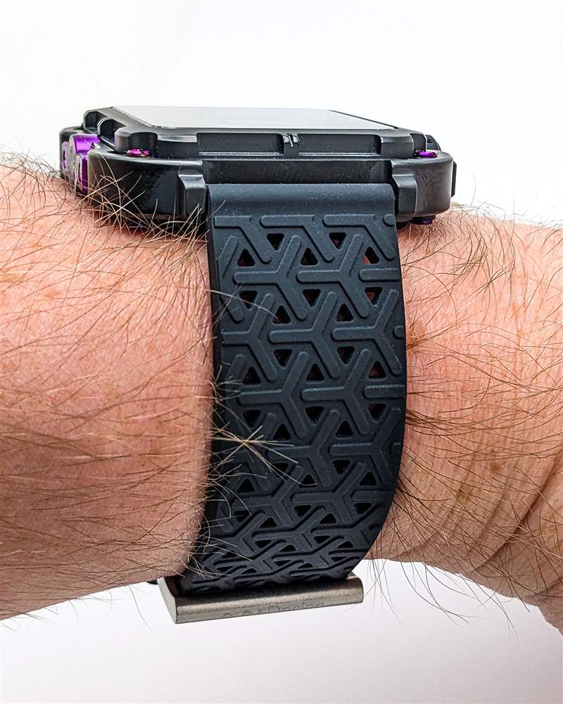 CIGA Design 為 Series X Gorilla 提供一對(duì)表帶選項(xiàng)。其中最引人注目的是定制的黑色橡膠穿孔表帶。這款柔軟、靈活的表帶采用重復(fù)凸起的三點(diǎn)圖案,與表殼和表盤的未來感相得益彰,同時(shí)也有助于使這款表帶舒適透氣。該品牌還包括一條黑色織物表帶,使用起來更加堅(jiān)固。兩條表帶均采用裸露的不銹鋼硬件,與表殼形成輕微對(duì)比。