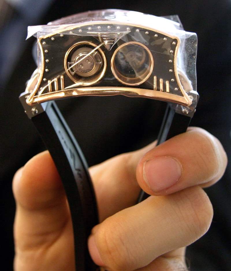 話雖如此,您可能不會經(jīng)常佩戴德威特 WX-1。坦率地說,它太大了,甚至無法放在襯衫袖子下面,你會羞愧地叮叮當(dāng)當(dāng)。同樣,有趣的是,德威特可能在這款手表上花費最少的精力來報時。手表的時鐘部分像母艦的節(jié)點一樣突出。與使用指針的傳統(tǒng)手表不同,WX-1 具有三個兩個旋轉(zhuǎn)盤。將它們與表盤頂部的小箭頭對齊,您就有時間了。第一次出現(xiàn)告訴我,圓盤是某種指南針或儀器,對我的認知來說太復(fù)雜了。然而,仔細觀察會發(fā)現(xiàn)表盤上常見的數(shù)字,這一定是我告訴時間的地方,而且確實如此。這不是德威特試圖迷惑任何人,而是為了確保手表的效果不會持久。一個宏偉的復(fù)雜功能的愿景,其從信息中讀取出來,就像持有它的身體一樣美麗。