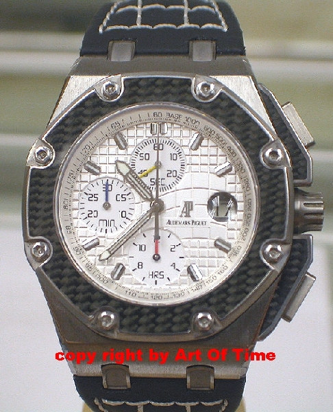 Royal Oak Offhsore Juan Pablo Montoya 有兩款鋼金或金製作。我相信它出現(xiàn)在2002年,當時蒙托亞先生在F1賽場上表現(xiàn)很快。請注意,這是最受追捧的愛彼限量版一級方程式腕表。實際上,這是皇家橡樹離岸最具收藏價值的限量版作品之一。基本上,這意味著它是為數(shù)不多的可用產(chǎn)品之一,價格高于大約 1 年前的零售價格。鈦金屬8枚,玫瑰金1000枚。賽車手的名字聽起來像是毒梟,這絕非巧合。他畢竟是哥倫比亞人。如果我有其中一塊手表,我會讓人們認為美聯(lián)社為南美一個非常特別、非常有說服力的客戶制作了它。手表計時指針采用哥倫比亞國旗的顏色,標準的“巨型tapisserie”表盤紋理有一個有趣的變化。在中間,圖案變?yōu)榭雌饋硐褓惖狼€,有點像旗幟,或者可能是Microsoft Windows徽標(肯定是后者)。