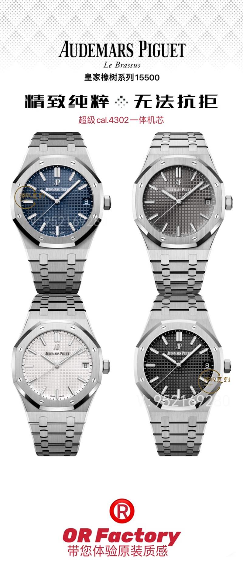 大家好,我是zslhs小編,2023年初,OR廠全面發布了AP系列的新品,全系列發布了AP15500、15400、15510三個系列共計13款腕表,后續會根據市場需求再拓展,今天我們主要了解的是OR廠的AP15500,也是目前主力男士三大針鋼款腕表。作為鋼王,正品一直處于供不應求的狀態,二級市場也是超越公價的存在,兩年前15900的公價,現在18900經典藍盤,這只是公價的溢價,還有二級市場的提價更嚴重,去年達到了50萬以上,這個主要還是看成色。