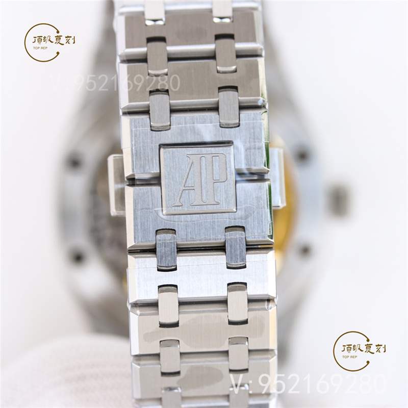 表帶,作為鋼王,表帶的做工要求非??季?,表帶的體驗度決定了這款表是否可以成功。OR廠的15500表帶每一粒都是逐粒打磨,每一節的表帶都要做精磨倒角,且頭粒做到了活動頭粒,這樣才能做到工藝上的美觀,以及佩戴時的舒適。每一節都做到精磨以及倒角之后,整體表帶更加柔順,表扣刻字清晰,內部字體工藝與原裝一比一。