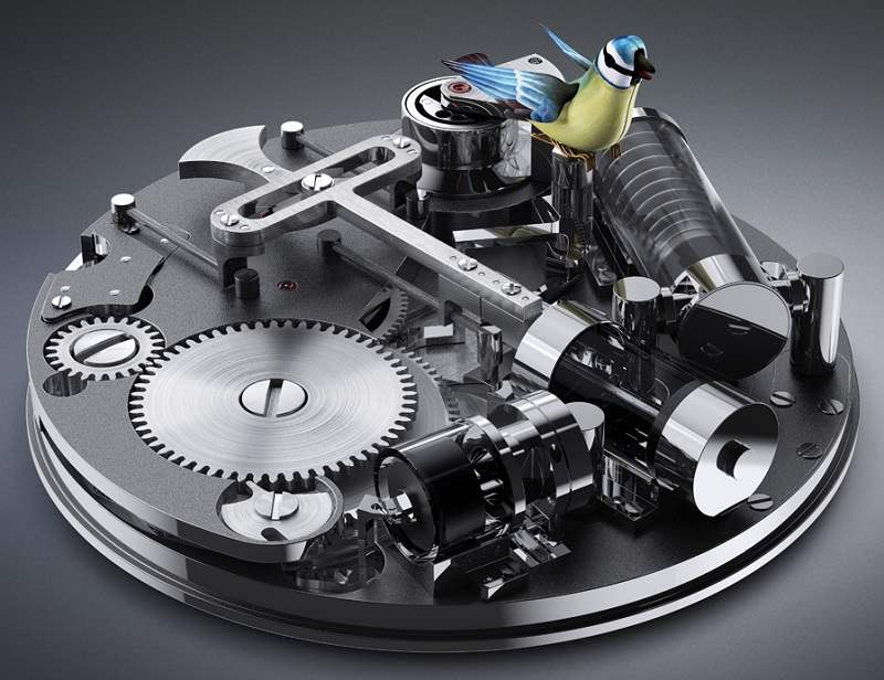 雅克德羅 (Jaquet Droz) 有史以來第一次制作出一只小到可以放入時(shí)計(jì)的微型自動(dòng)機(jī)鳥。Charming Bird 腕表的特點(diǎn)是在藍(lán)寶石水晶玻璃中為小鳥設(shè)計(jì)了一個(gè)泡泡,以及可重現(xiàn)小鳥歌聲的機(jī)械小鳥叫聲。雅克德羅 (Jaquet Droz) 研發(fā)的非凡機(jī)芯正是該品牌從第一天起就應(yīng)該努力的方向。雅克德羅 (Jaquet Droz) 以開放式機(jī)芯架構(gòu)巧妙設(shè)計(jì)迷人之鳥 (The Charming Bird),令整個(gè)機(jī)制一目了然。