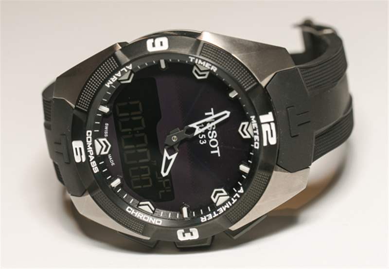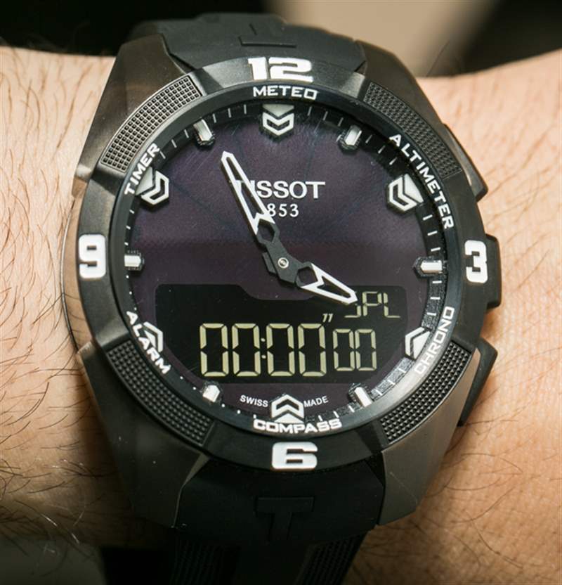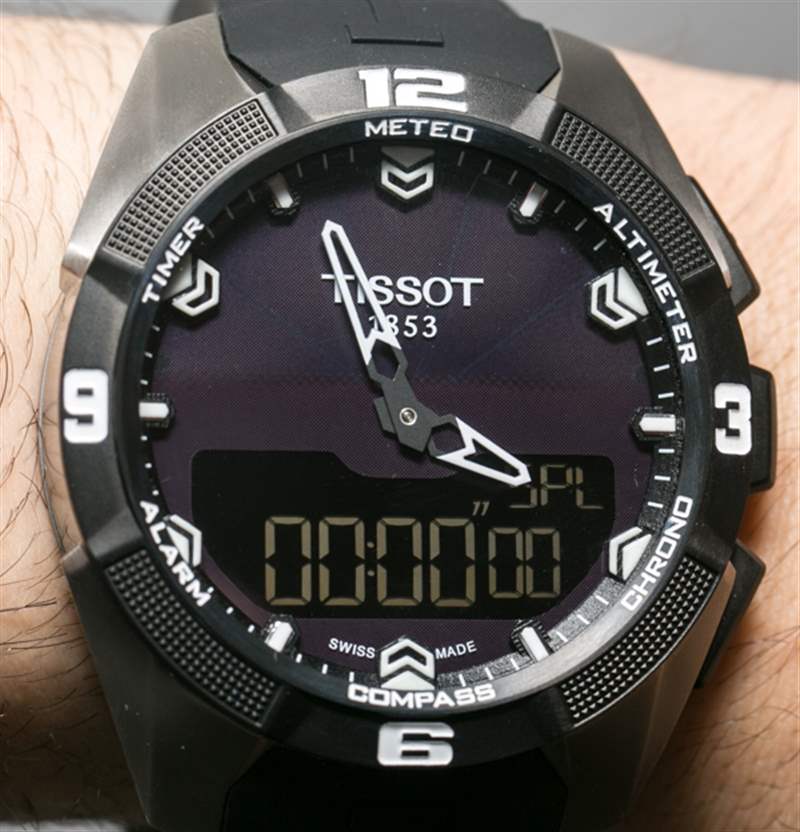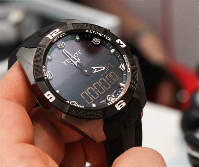 T-Touch Expert Solar 的尺寸比其他型號大,寬 45 毫米,但外殼感覺更薄。表殼本身出奇地輕巧,采用鈦金屬制成,防水深度達 100 米。雖然即使是鈦手表也感覺很輕。鈦將是大多數(如果不是全部)T-Touch Expert Solar 型號的材料。天梭進一步承諾提供一系列表盤和鈦手鏈。我們同意,就目前而言,表盤尚未完成,但它是實際概念的真實證明。