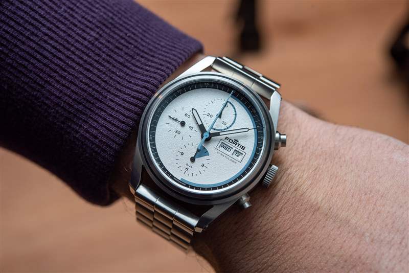 自手表愛好者 Jupp Philip 接管 Fortis 品牌及其 Grenchen 制造廠以來(lái)已有五年左右的時(shí)間。他擁有管理一家擁有 100 年歷史的食品行業(yè)家族企業(yè)的背景,接管了富通集團(tuán),雄心勃勃的目標(biāo)是讓該品牌及其手表具備適當(dāng)?shù)奶辗雷o(hù)能力,也就是說(shuō)“獲得太空使用的官方認(rèn)證”。哦,他還想制作自己喜歡佩戴的手表,因?yàn)樗芾碇恢《押们覠崆楦邼q的富通團(tuán)隊(duì)。很少有人會(huì)聽到鐘表行業(yè)的工作人員說(shuō)這樣的話:“感覺沒有一天是在工作。我喜歡呆在這里,成為其中的一部分。” 盡管富通團(tuán)隊(duì)在北極圈待了幾周、遠(yuǎn)離朋友和家人,但他們?nèi)匀槐憩F(xiàn)出這種態(tài)度。