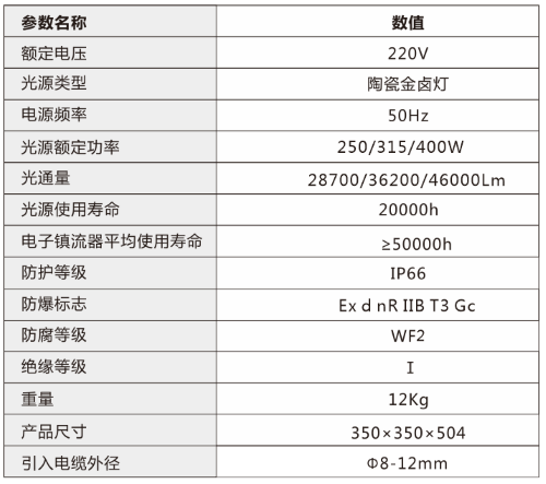 - 燈體與鎮流器箱采用分體式設計,一體式安裝,既能有效保證電源電路不受燈體發熱的影響,又能保證產品的安裝、維護簡單方便。